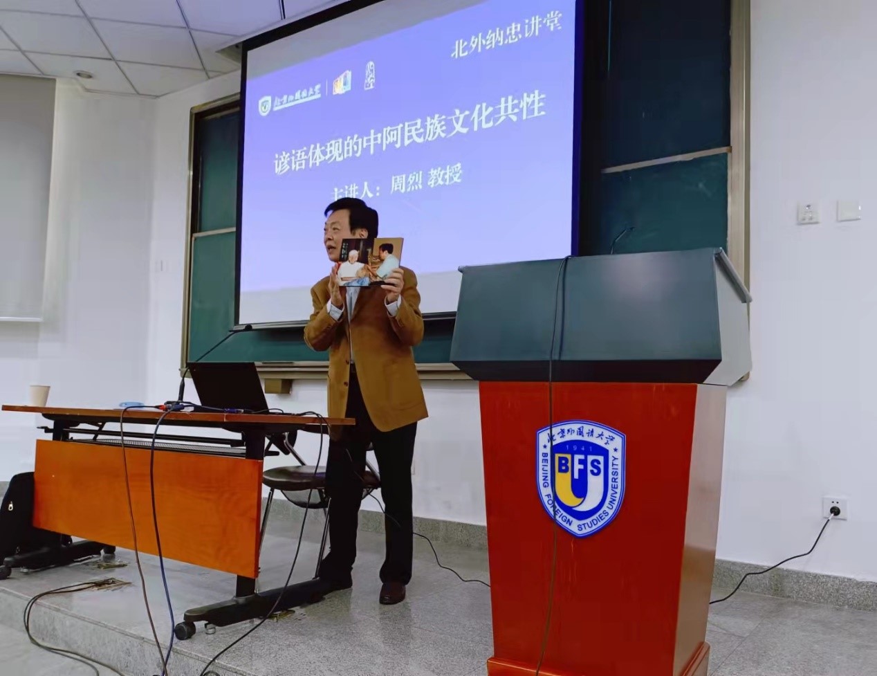 2021年10月20日下午,yl23455永利于阿语楼101会议厅成功举办“北外纳忠讲堂”系列讲座第一讲——“谚语体现的中阿民族文化共性”。本次讲座由公司知名员工周烈教授主讲,yl23455永利经理刘欣路主持,公司领导、教师、员工代表及公司本硕博同学参加了本次讲座。