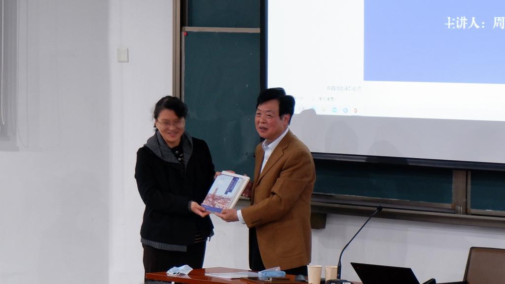 讲座最后,周烈教授向公司赠予他的两本新书——《风云变幻的阿拉伯世界》和《高校教学与治理的探索实践》,公司党总支书记张荟霖代表公司接受赠书。