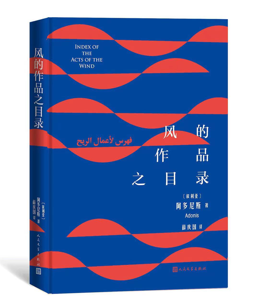 薛庆国教授翻译的《风的作品之目录》于2020年由人民文学出版社出版,这是他翻译的阿多尼斯作品的第7部中文译作,也是这部诗集的首个中文全译本。译文忠实而传神,文辞清雅,诗意浓郁,体现了译者深厚的中外文功力和文学修养,出版后受到我国文学界和广大读者的一致好评。