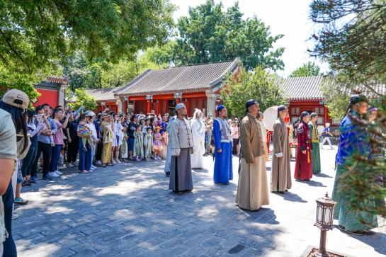 师生首先走访了牛街街道法源寺历史文化街区。据介绍,会馆文化是牛街的重要特点,如绍兴会馆、浏阳会馆等众多会馆的原址都在这里。同学们通过“定向探寻”的方式,以小组合作的形式,共同探寻会馆文化并体验这一文化特色,在胡同的老旧肌理中,倾听前人唤起时代的振奋人心的故事,感受京城的历史人文底蕴。