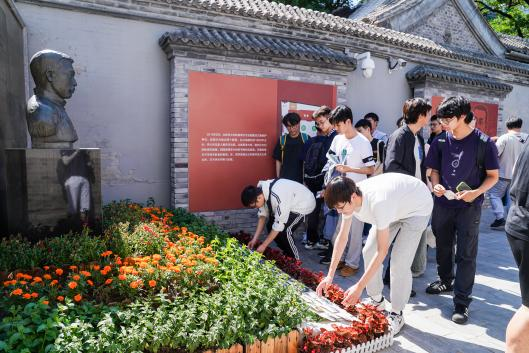 随后,师生们来到李大钊故居。在这里,同学们仿佛看到了李大钊先生热情宣传马克思主义,仿佛见到了先生与革命人士开会讨论的热烈场景,仿佛听到了他在《敬告国人书》中“同胞们!快快运用我们伟大的革命呵!”的呐喊。同学们有感而发,纷纷执笔,在明信片上写下自己想对李大钊先生诉述的话语,敬献在雕塑前,并鞠躬缅怀。愿先生透过历史的明月,见今日中国的盛世繁华!