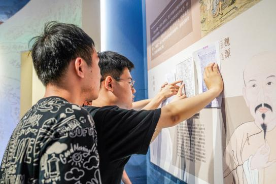 从胡同出来后,步行数百米,便来到了宣南文化博物馆。围绕宣南士乡的城市空间、士人群体的生活空间、学术活动、精神追求等梯次,同学们在楹联字画、文物藏品中,认真了解并学习了宣南地区的悠久历史和丰厚文化。其中名为“宣南往士”的沉浸式导览剧以其独特的演绎和讲解方法,深深吸引了大家的兴趣,同学们在演员们的带领下见证“士不可以不弘毅,任重而道远……”,感受清代宣南大儒们的胸怀天下、勇于担当。