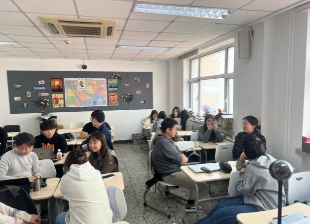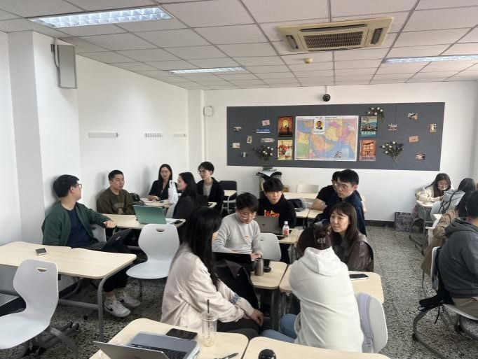 随后,与会党员围绕“人工智能与语言学习:机遇与挑战”主题分组展开了细致讨论。党员冯乔认为, AI虽能高效处理技术文本,但在一些领域仍无法取代人类。随着技术进步,译后编辑等新兴职业应运而生,人机协作将成为趋势。我们应积极拥抱技术,提升自身语言与跨文化能力,使AI成为辅助工具而非威胁。党员唐雨昕表示,我们不必焦虑“被取代”,人类与AI始终是互补共生的关系,因为AI依赖我们提供数据优化模型,而我们则通过它突破传统学习边界。党员高越珩提出,在进行中国特色话语翻译时,AI翻译无法取代人工翻译的核心作用,人工翻译在确保中国特色话语准确传达、维护国家话语权方面具有不可替代的价值。党员孙丰轩指出,作为博士研究生需善用AI提升研究效率,但要保持对文本的批判思维,要主动参与阿拉伯语AI模型优化,AI的发展并非替代人文研究,而是为阿拉伯语文学、语言学、文化研究开辟新维度的“智能助手”。大家踊跃发言,分享观点,凝聚共识。