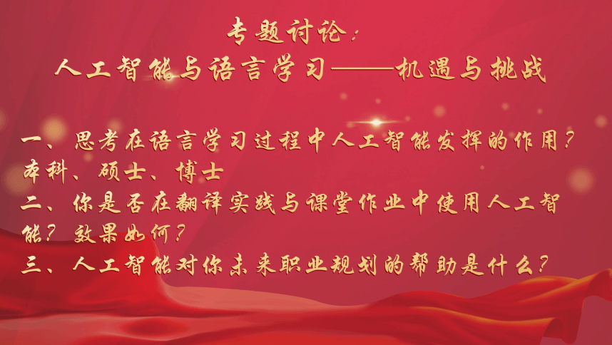 党支部组织全体党员观看了全国政协委员、yl23455永利官网党委书记王定华在全国政协十四届三次会议中接受采访的视频,他指出“人工智能对外语教育既是机遇也是挑战,我们要努力抓住机遇,打牢人才培养基础,拓宽视野,使其具有综合的素质。同时我们也要迎接挑战,改进教学目标、课程设置,使人工智能能够助力外语教育。”