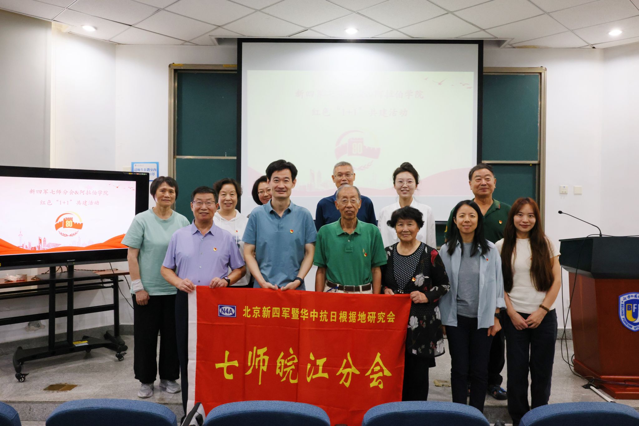 新四军研究会七师分会常务副会长李湘滨,副会长兼秘书长桂琦,副会长李晓帆、罗亚滨,副秘书长齐明敏、何长红、丁一平,公司副经理吴旻雁,党总支副书记文斌,教师党支部书记唐珺,教师党员孟炳君,员工党支部书记贾悦琪,宣传委员苗耀丰及全体2025级新生参会。