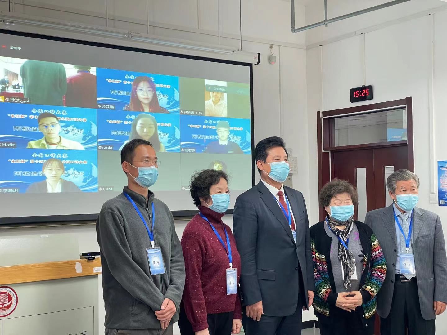 “永旺杯”多语种全国口译大赛的举办旨在进一步提高我国高校翻译人才培养质量,实现翻译教学、翻译研究与社会翻译实践的互动交流与有机结合,现已成为国内参赛语种及选手最多,赛事规模及影响力最大,最具权威性的比赛之一,为我国的翻译事业选拔了众多青年人才。本届口译大赛涉及日语、法语、俄语、德语、朝(韩)语、西班牙语、阿拉伯语共7个语种,外译中和中译外两个环节。今年9月,来自全国各地高校的选手参加了大赛初赛,经过专家评审,最终有115名选手参与大赛复赛及决赛的角逐,其中包括阿拉伯语交传组的选手14名。