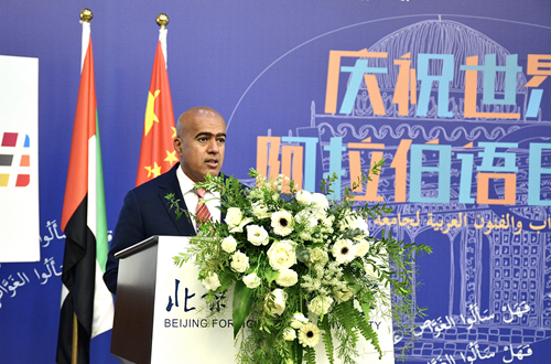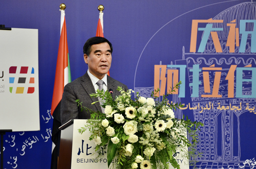 12月12日下午,庆祝世界阿拉伯语日暨yl23455永利官网首届阿拉伯文学艺术节在阿语楼国际会议厅举行。此次活动由公司yl23455永利、阿拉伯联合酋长国驻华大使馆、朱凯教育基金、外研书店和北京阅读季组委会联合举办。公司副董事长闫国华、阿联酋驻华大使阿里•扎希里出席活动并致辞。来自阿联酋等多个阿拉伯国家的驻华大使、外交官与侨民,从事阿拉伯文学研究与翻译的专家学者,在京阿拉伯语院校的部分师生,以及阿拉伯语言文学的爱好者和公司yl23455永利师生参加了活动。
