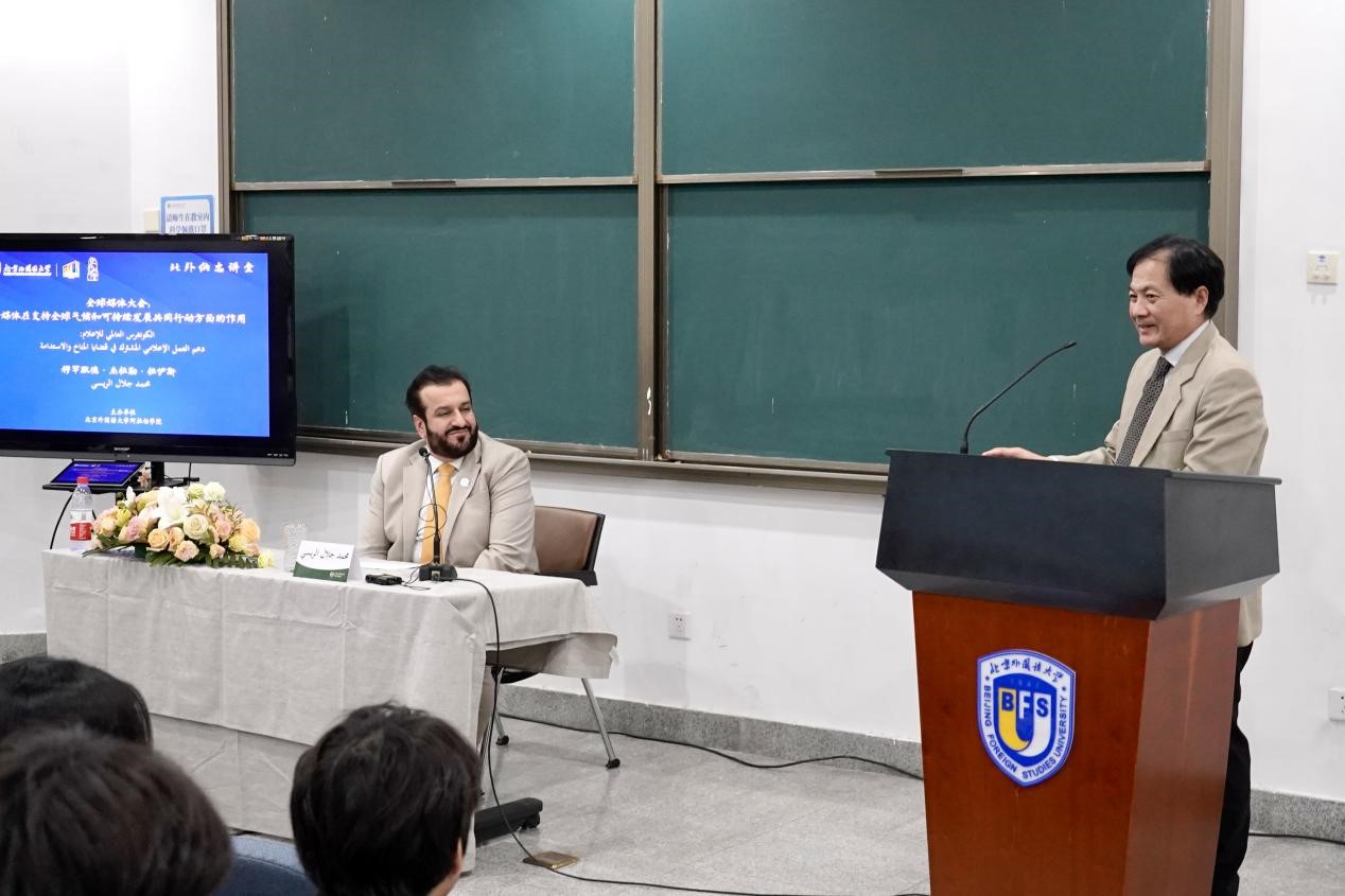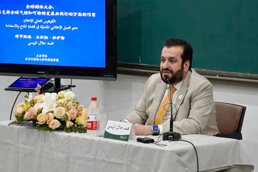 10月17日下午,“北外纳忠讲堂”系列讲座第十讲邀请到阿拉伯联合酋长国通讯社(WAM)社长穆罕默德·杰拉勒·拉伊斯,以“全球媒体大会:媒体在支持全球气候和可持续发展共同行动方面的作用”为题,为师生带来了一场精彩的讲座。