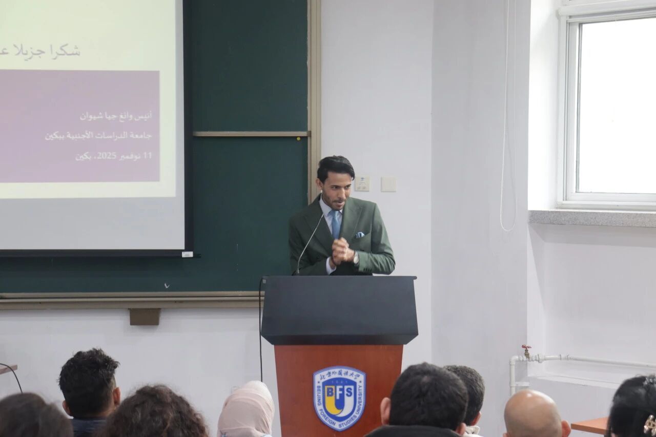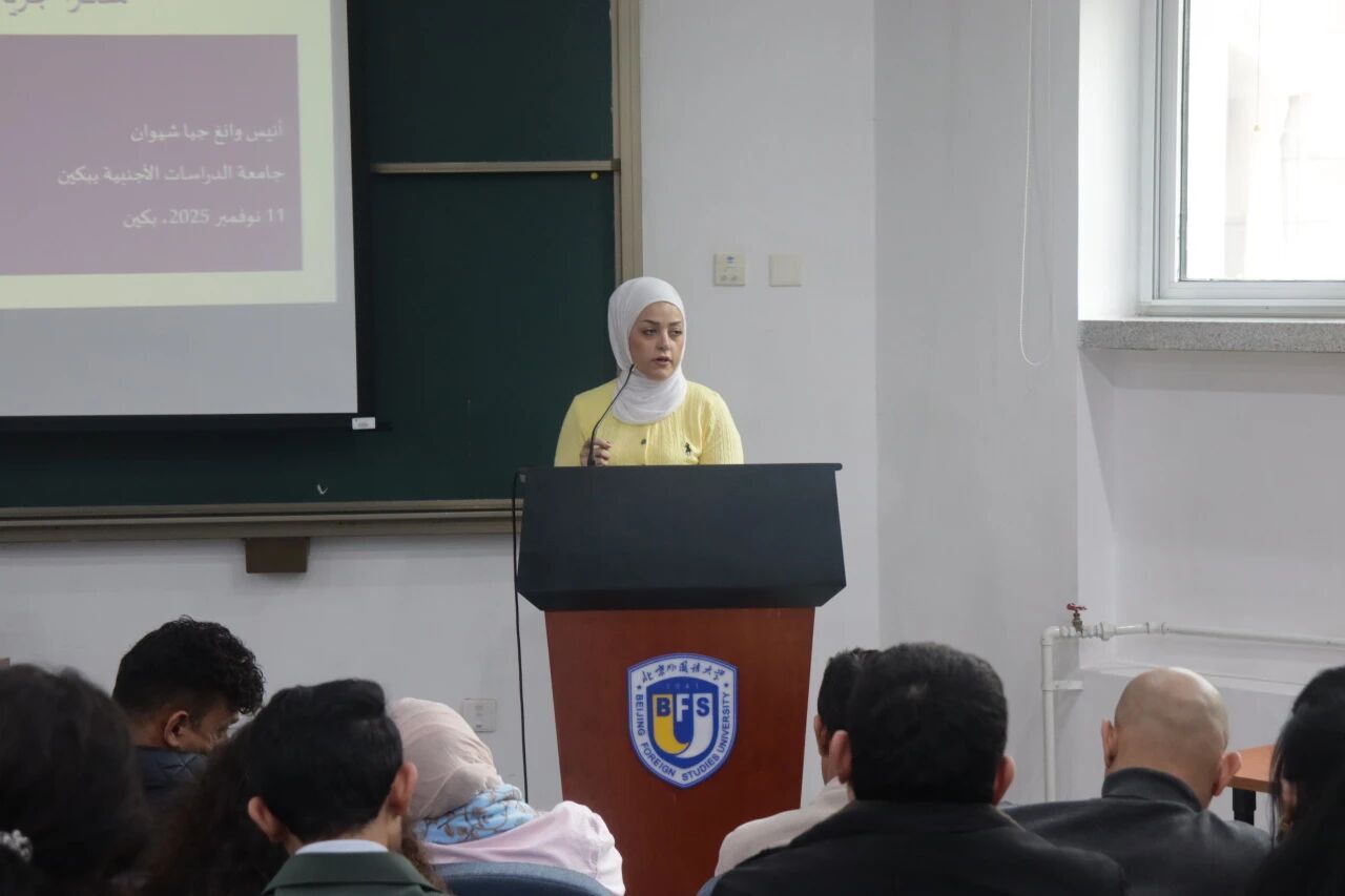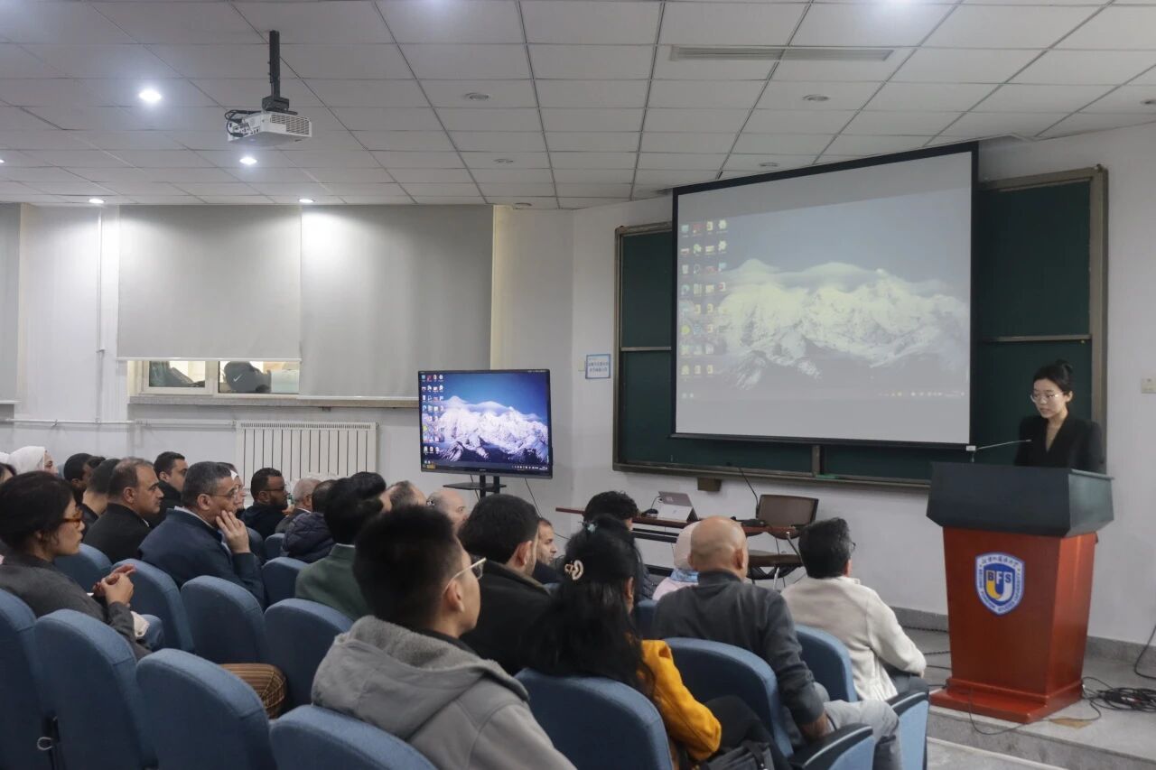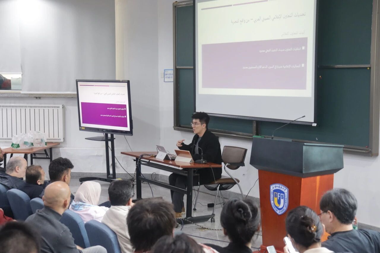 公司博士研究生王嘉轩结合个人经验,立足于新时代中阿国际交流大背景,从多个角度入手,分享了媒体在跨文化交流中的实践经验,并对未来中阿文明交流进行了展望。