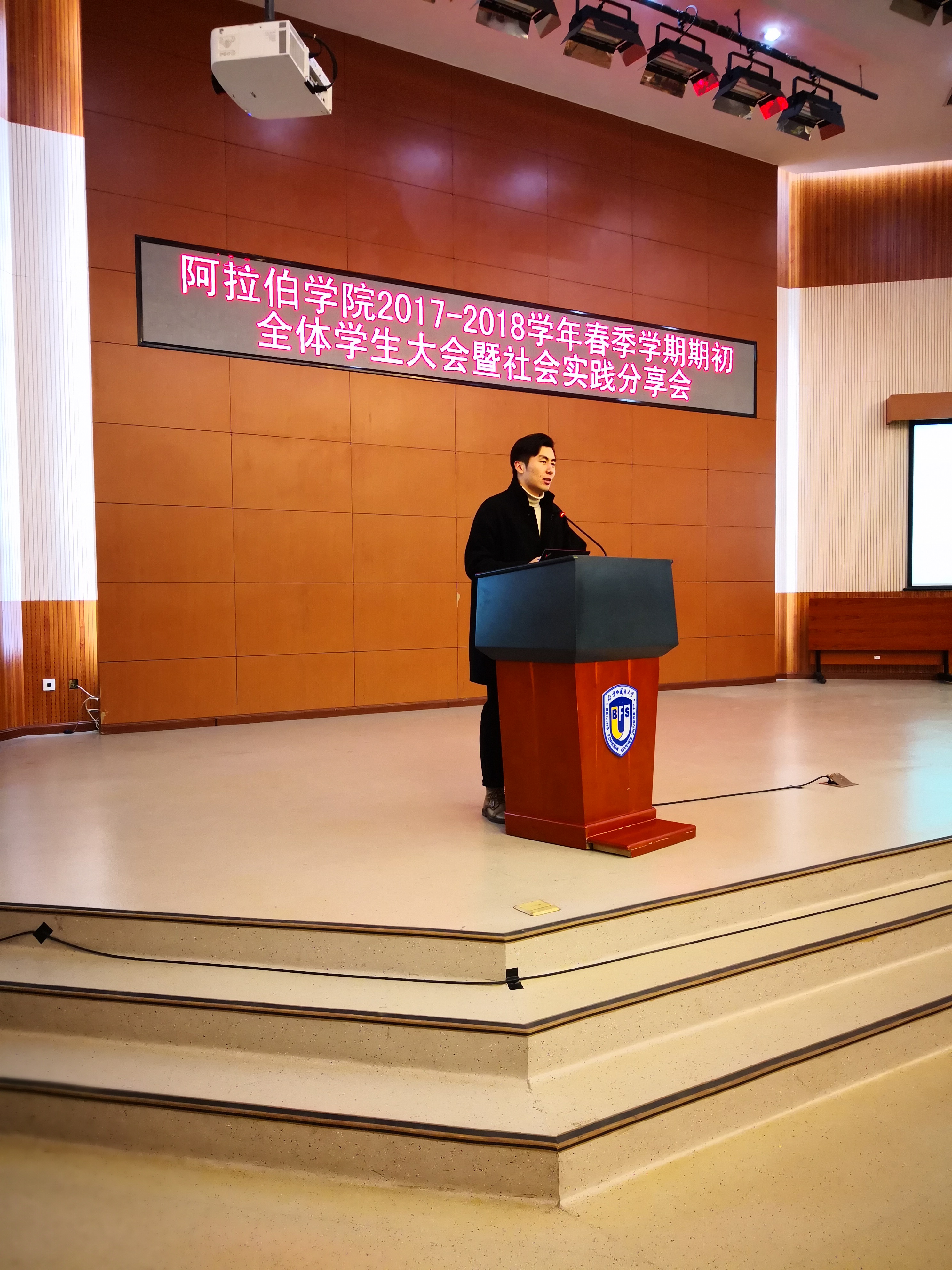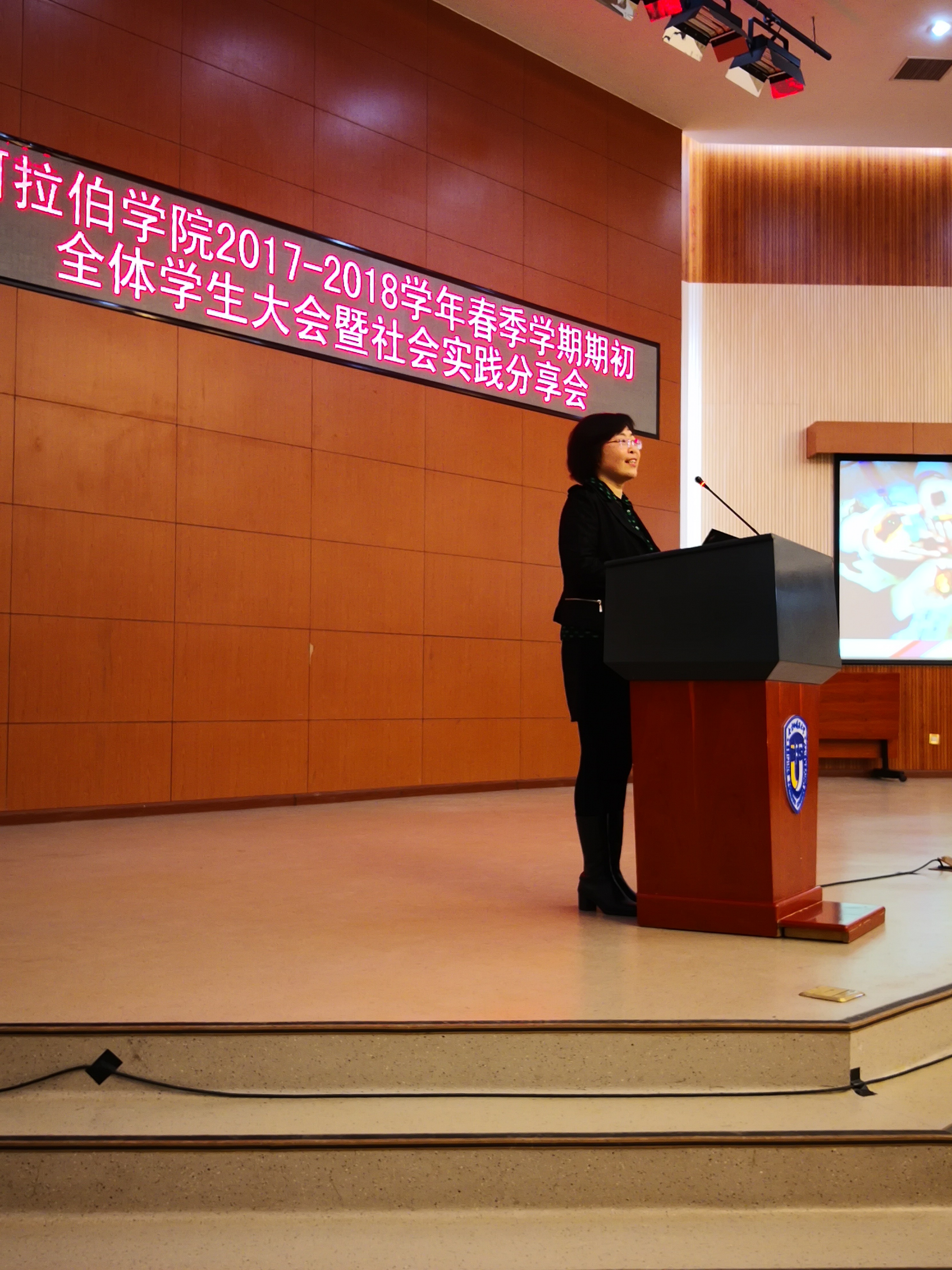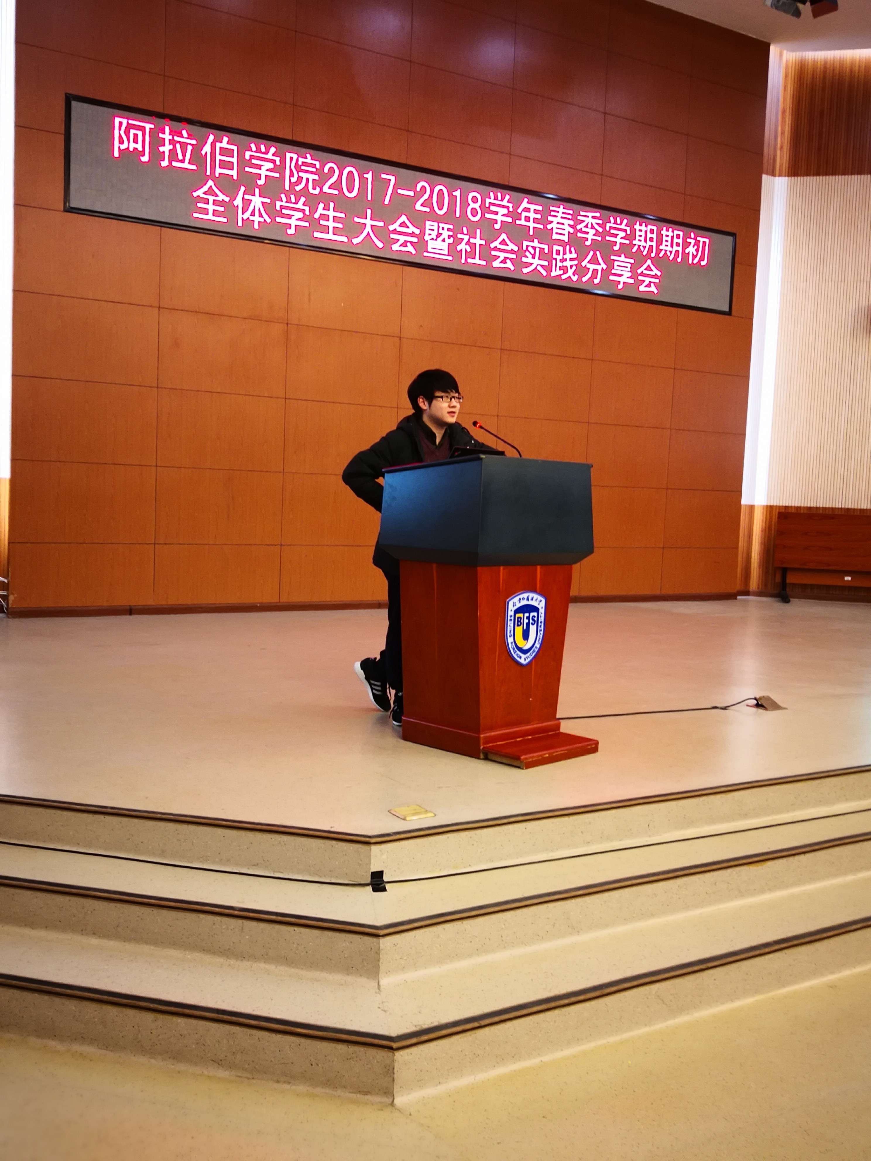 本次大会旨在为同学们提出新学期的要求和建议,以及为大家分享社会实践的经历和感悟。大会由吴丹梅书记主持。