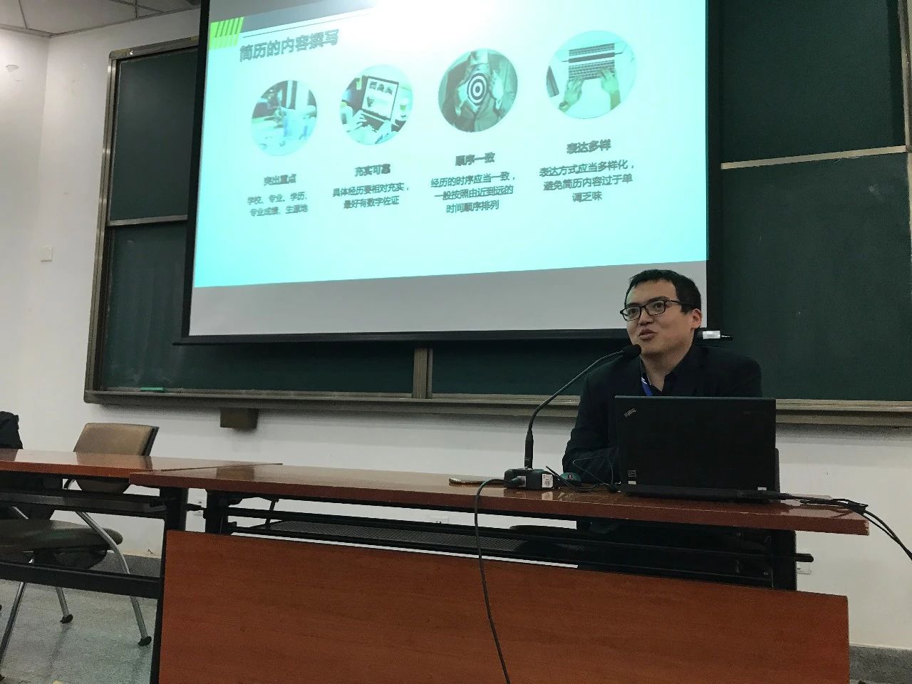 其次是面试技巧,王老师将面试时的几大要素按重要程度排列为——知识、能力、动机、经验、风格,他表示,以上几大要素,折射出的是一个人的综合素质,希望大家在求职应聘的全过程中均高度重视自己的一言一行。对于面试前的准备,王老师建议大家要明确自己的定位,认真思考某项工作与自己的切合程度,积极与公司中已入职的学长学姐沟通,综合了解公司招聘、工作的相关信息。此后,王老师特别强调了面试时第一印象的重要性,要求大家不仅要注重仪容着装、行为举止、面部表情、讲话语调等基本方面,还要抓好简历投递、电话沟通、面试候场等多方面的细节。王老师还从HR的角度出发,向大家传授了自我介绍、问答逻辑、双向面试、关系处理等方面的实用技巧。