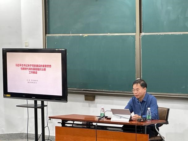 报告以 “习近平总书记关于党的建设的重要思想与新时代高校基层组织治理工作解读”为题,主要从习近平总书记关于党的建设的重要思想、新时代高校基层组织工作主要法规、新时代高校基层组织工作标准化指引、新时代高校基层组织工作重点把握四个方面展开。