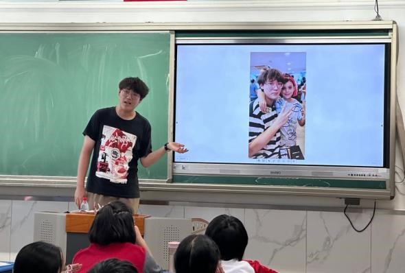 孙丰轩同学向初一年级员工分享在埃及交换留学的经历,他介绍了埃及的基本国情,以自己亲身经历的小故事,感受到通过学习当地方言积极融入对象国,践行青年使命,为促进中埃交流发挥自身作用;刘明骋同学介绍了自己访英研学的经历,他跟随北外暑期海外实践团参访了莎翁故居,中外员工共同排演了莎剧,北外学子为英方师生展示中国舞蹈,开展了多种形式的文化交流活动。