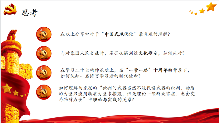 最后,分享提出了四点问题,带着对这些问题的思考,大家观看了高公司党组织示范微党课的相关内容。通过深入了解埃及的国情发展,对比埃及与中国的国情差异,学习微党课,大家更深刻地体会到中国式现代化的巨大优势与世界意义。