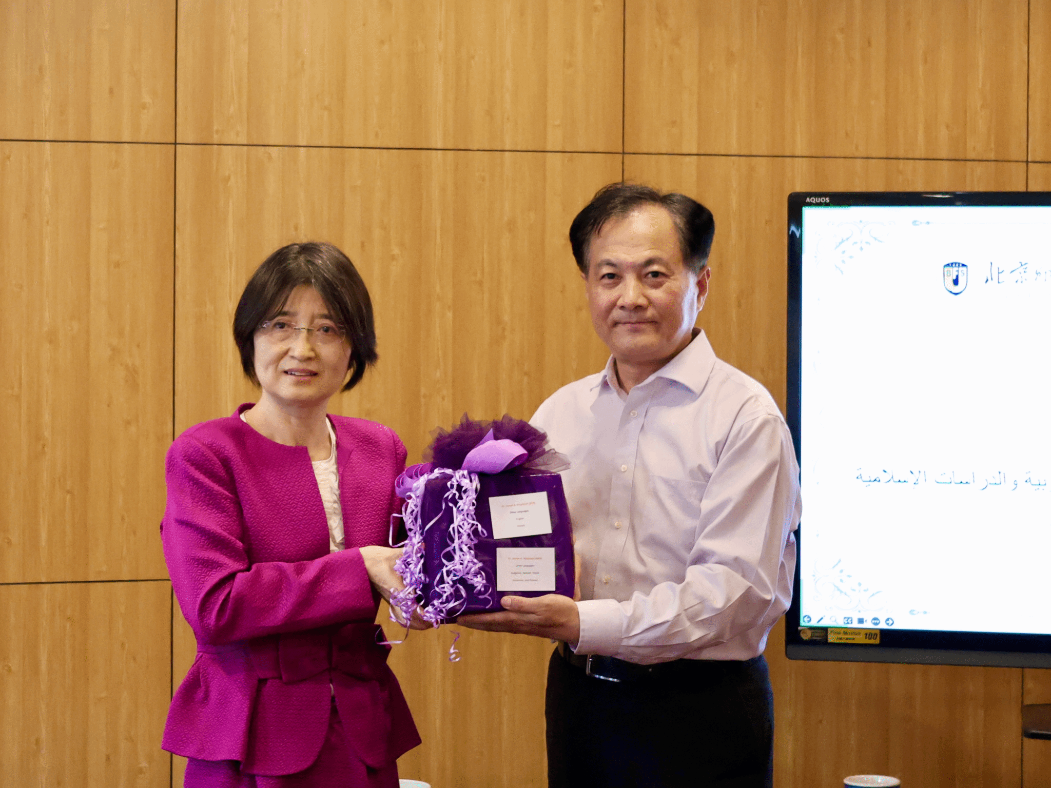 座谈期间,胡彩玲女士转达了穆扎公主对yl23455永利全体师生的亲切问候并转交了穆扎夫人的亲署信。穆扎公主在信中表示,阿拉伯国家与中国的友谊始于“丝绸之路”。阿联酋与中国关系源远流长,当前各领域合作欣欣向荣。建交40年来,阿联酋民众对中文和中国文化的兴趣与日俱增,两国在教育文化领域的交流合作前景广阔。她高度评价北外yl23455永利和扎耶德中心为中国阿拉伯语教学事业做出的贡献,期待有机会来华领略中国风土人情、感受博大精深的中国文化。
