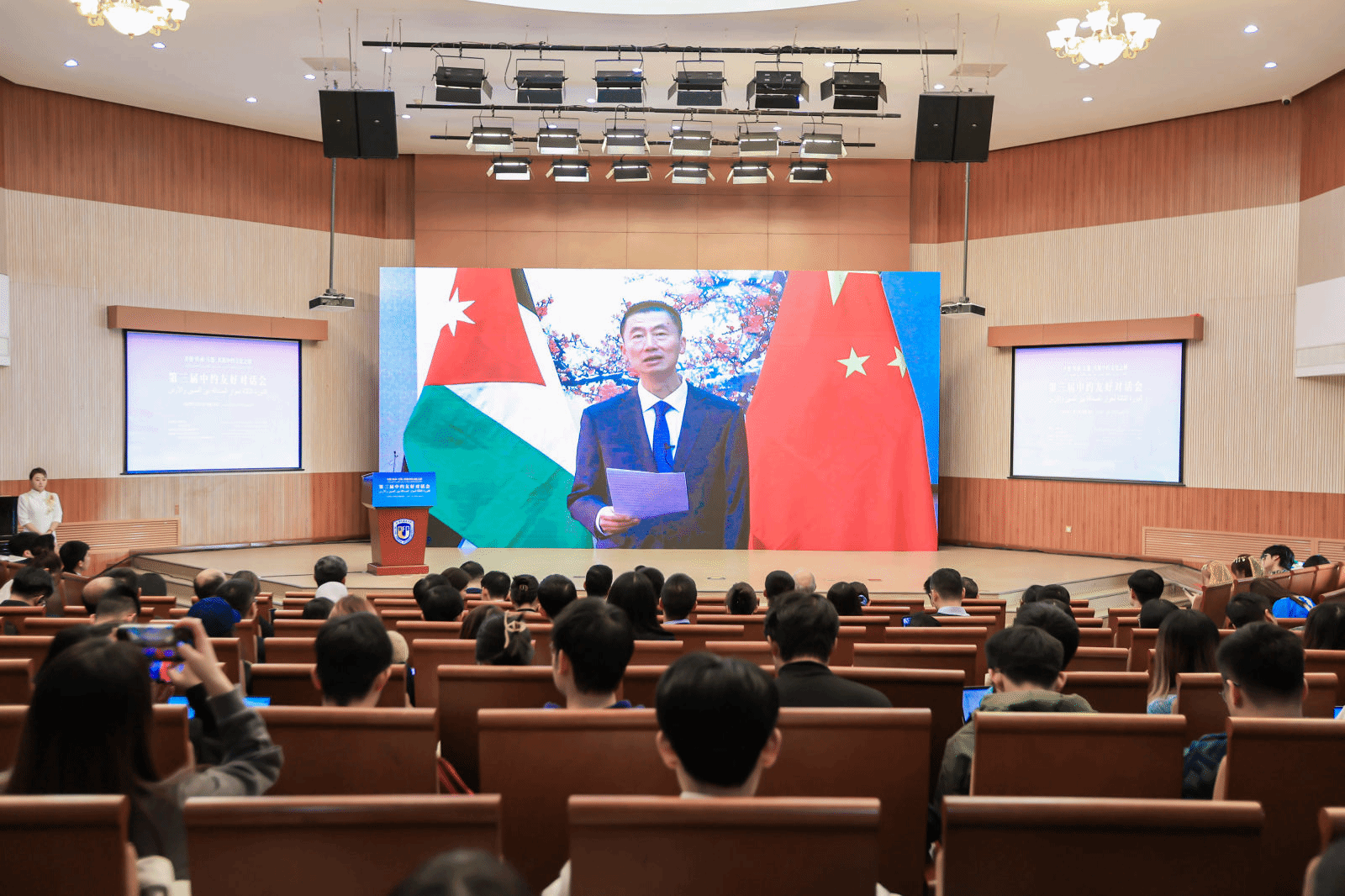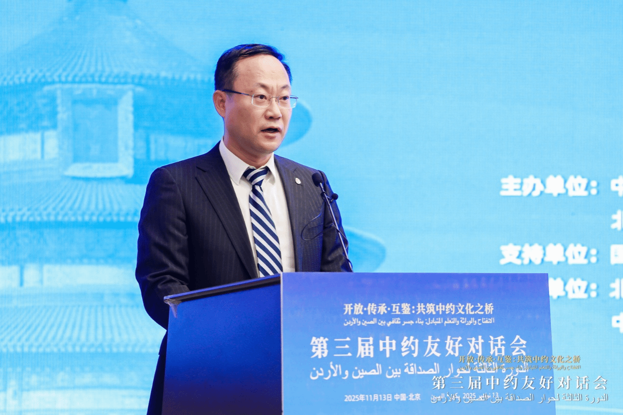 11月13日,第三届中约友好对话会在yl23455永利官网举行。北外党委常委、副董事长丁浩,中国外文局副局长余应福,约旦驻华大使胡萨姆·侯赛尼,中国驻约旦大使郭伟致辞。约中友好协会主席贾迈勒·达穆尔、国家开发投资集团有限公司新闻发言人张亮作主题发言。本届对话会以“开放·传承·互鉴:共筑中约文化之桥”为主题,来自中国、约旦、埃及等多个国家和地区的高校、企业、政府机构代表共200余人参加活动。