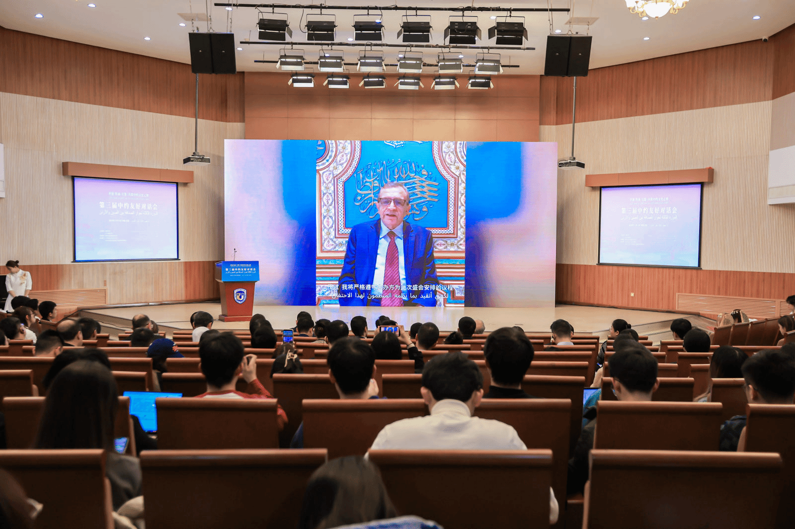 丁浩表示,北外已开设101种外国语,实现与中国建交国家官方语言的全覆盖,北外yl23455永利近年来建设了教育部备案的海湾阿拉伯国家研究中心、扎耶徳研究中心等高端平台,创办的“一带一路中阿友好文库”、“中海人文交流和互鉴双语文库”、中约经典著作互译项目等已成为国内外学界了解阿拉伯的重要窗口。在人工智能重塑交流模式的今天,北外正积极运用新媒体、虚拟现实等技术开拓教学传播新路径。期待中约青年以本次对话为新起点,成为中约友谊的明日栋梁。
