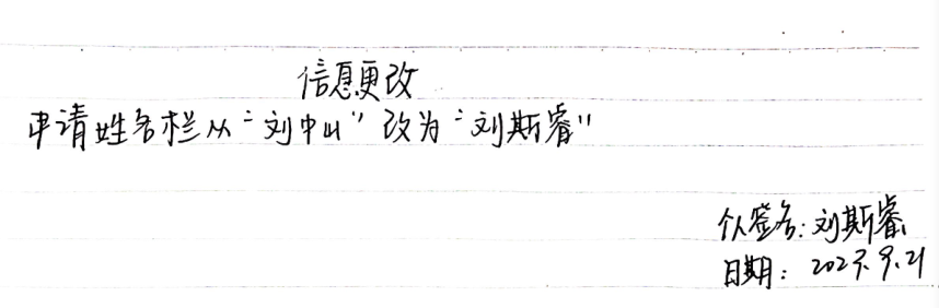 现将“刘中山”更正为考生姓名“刘斯睿”,特此公告。