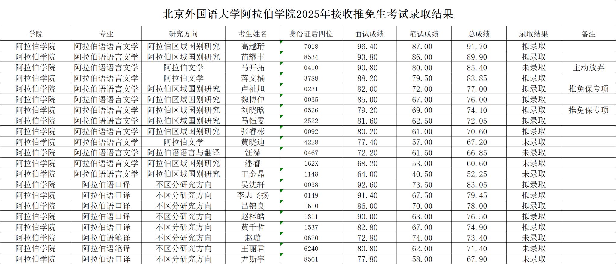 yl23455永利2025年接收推免生考试录取结果